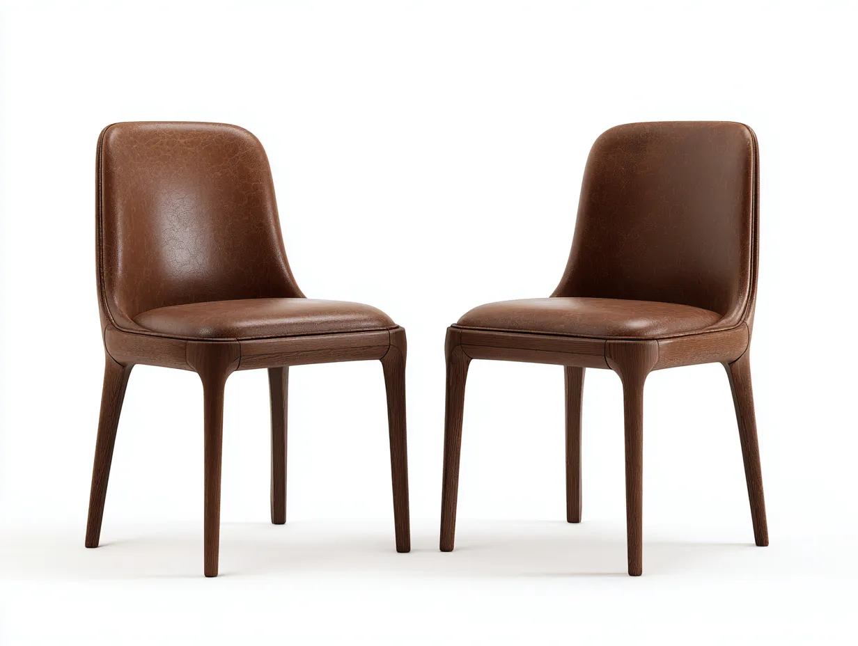 Sedia da pranzo - pelle-legno - 55x53x77 cm - marrone - stile contemporaneo