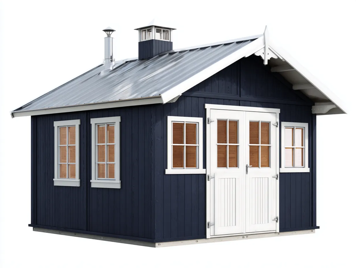 Casetta da giardino-Legno-Metallo-240x200x220 cm-Blu scuro-Stile classico funzionale