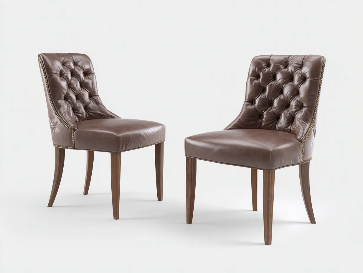 Sedia da pranzo - pelle-legno - 60x58x82 cm - marrone - stile classico