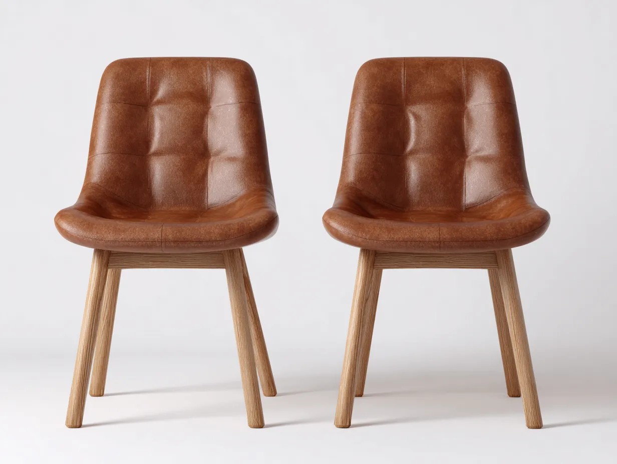 Sedia da pranzo - pelle-legno - 55x53x77 cm - marrone - stile contemporaneo