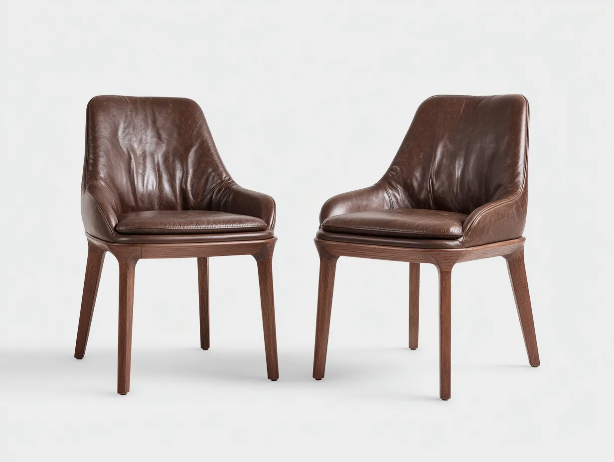 Sedia da pranzo - pelle-legno - 59x57x81 cm - marrone - stile contemporaneo